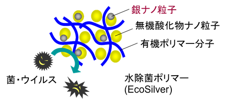 薬剤を溶かさず菌を接触・吸着させて除菌