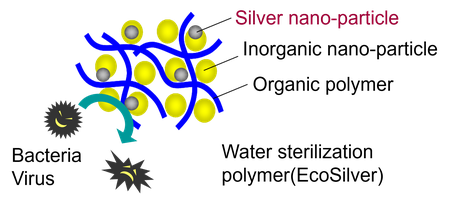 It swells in water, making a formation easy to catch bacteria with the polymer molecule network. The caught bacteria is killed by the effect of the silver particle immobilized on the polymer.