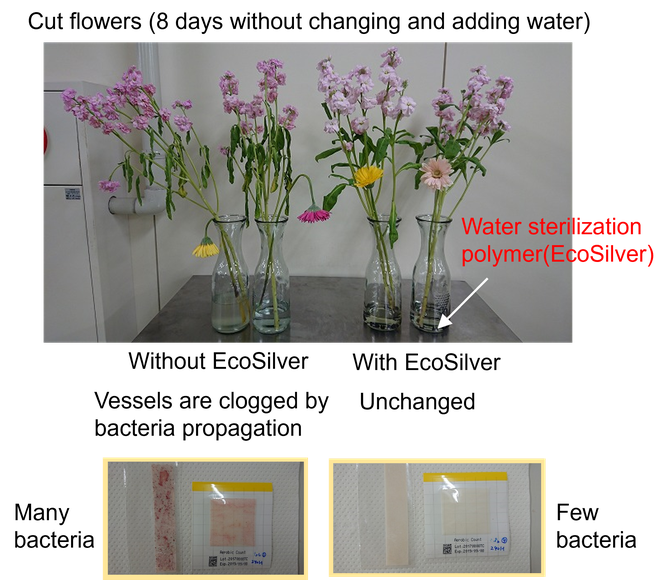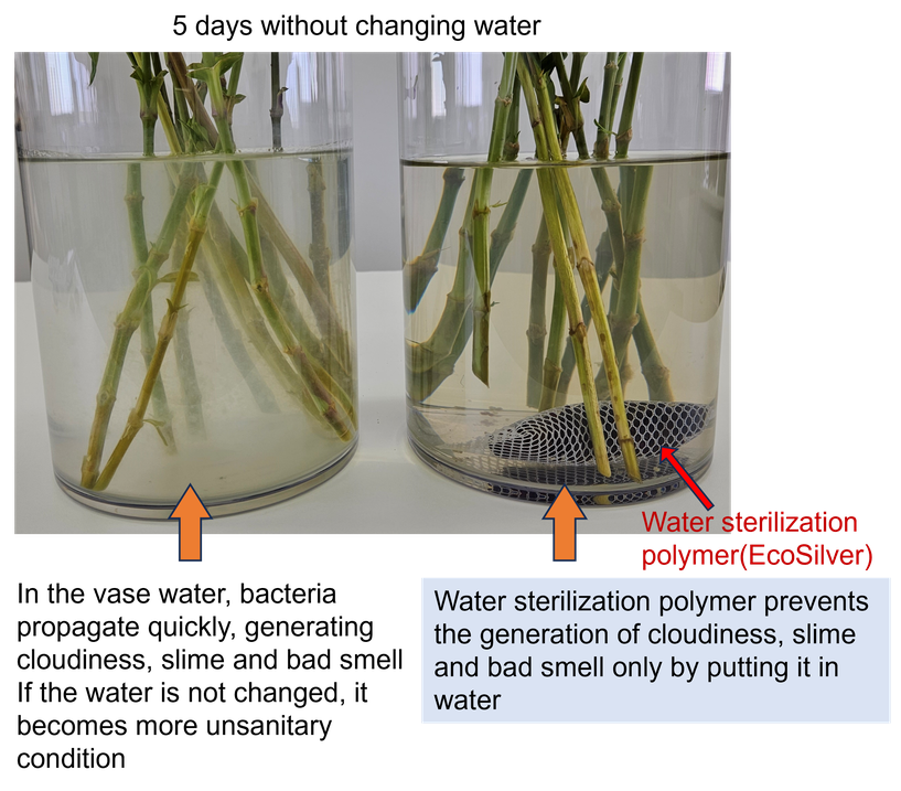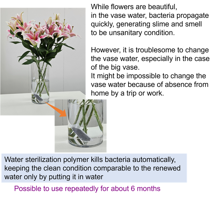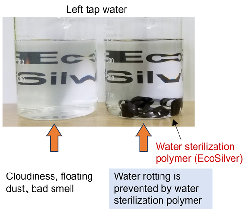 Water sterilization polymer kills bacteria automatically only by putting it in water and prevents the rot