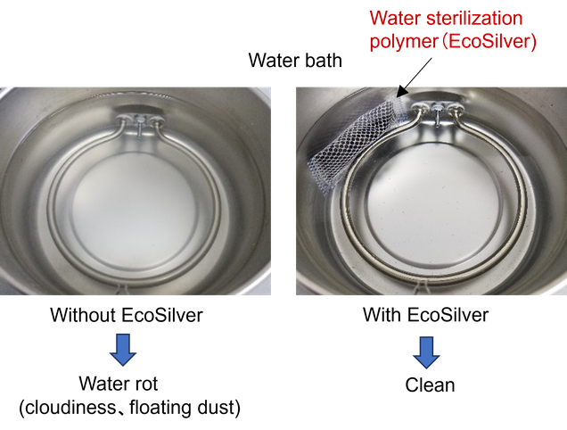 If water is not renewed, it is kept clean only by putting water sterilization polymer in